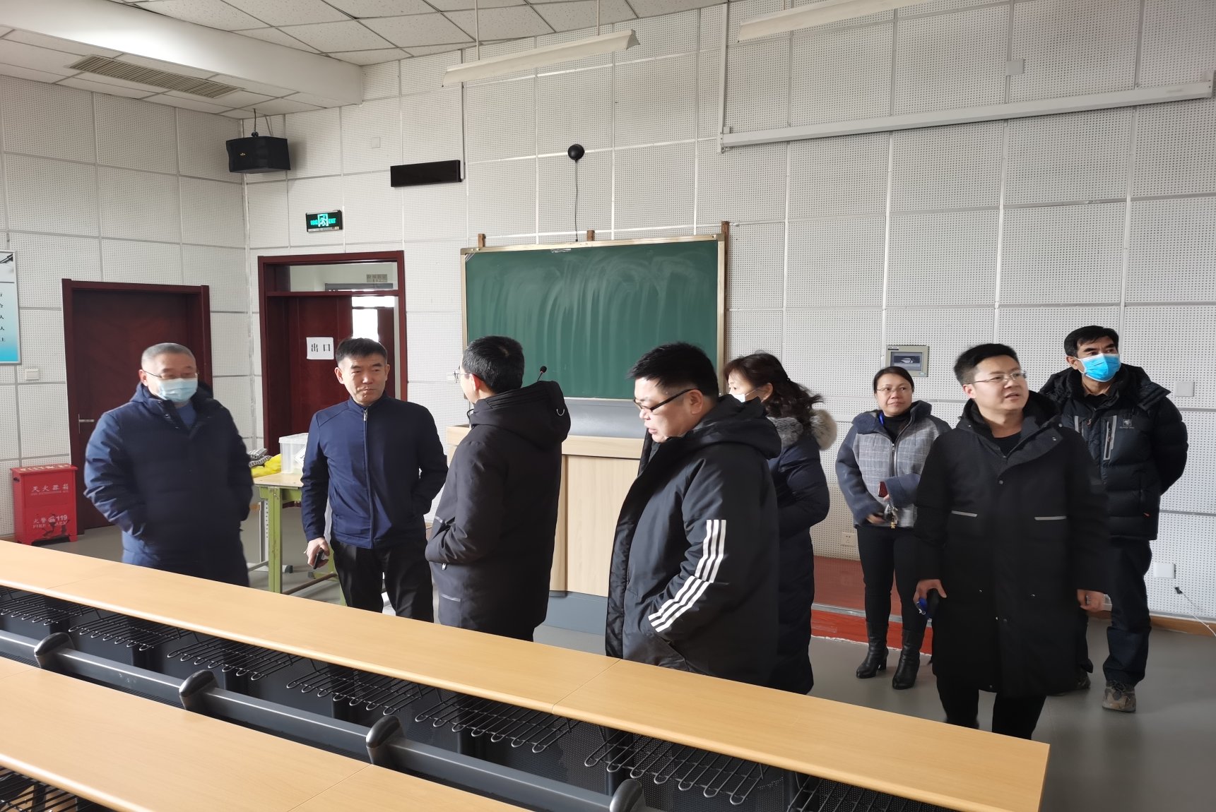 吴兵副校长详细了解了学院阶梯教室新置桌椅及新铺地面情况