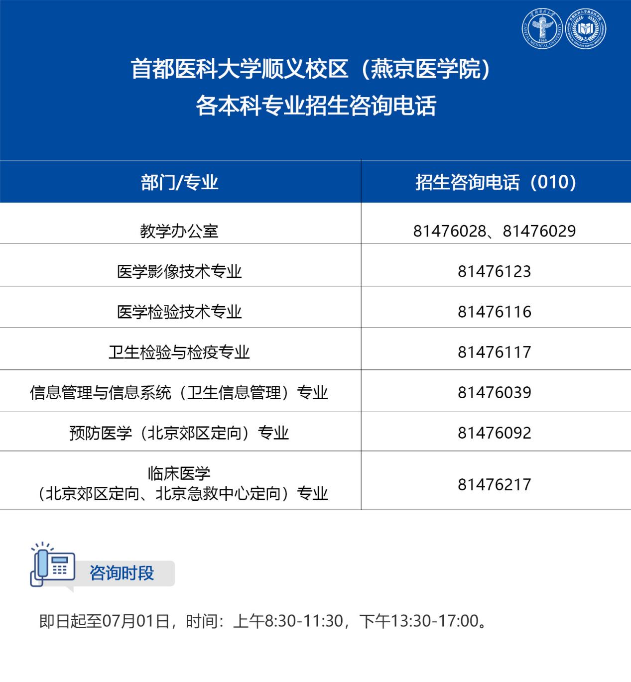 2025年顺义校区各本科专业招生咨询电话