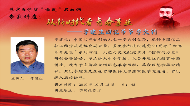 李建生会长“从新时代看青春事业——李建生回忆爷爷李大钊”讲座的通知