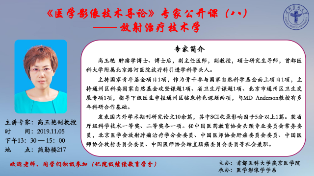 高玉艳副教授《医学影像技术导论》专家公开课(八)的通知