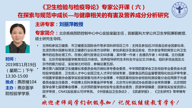 刘丽萍教授《卫生检验与检疫导论》专家公开课(六)的通知