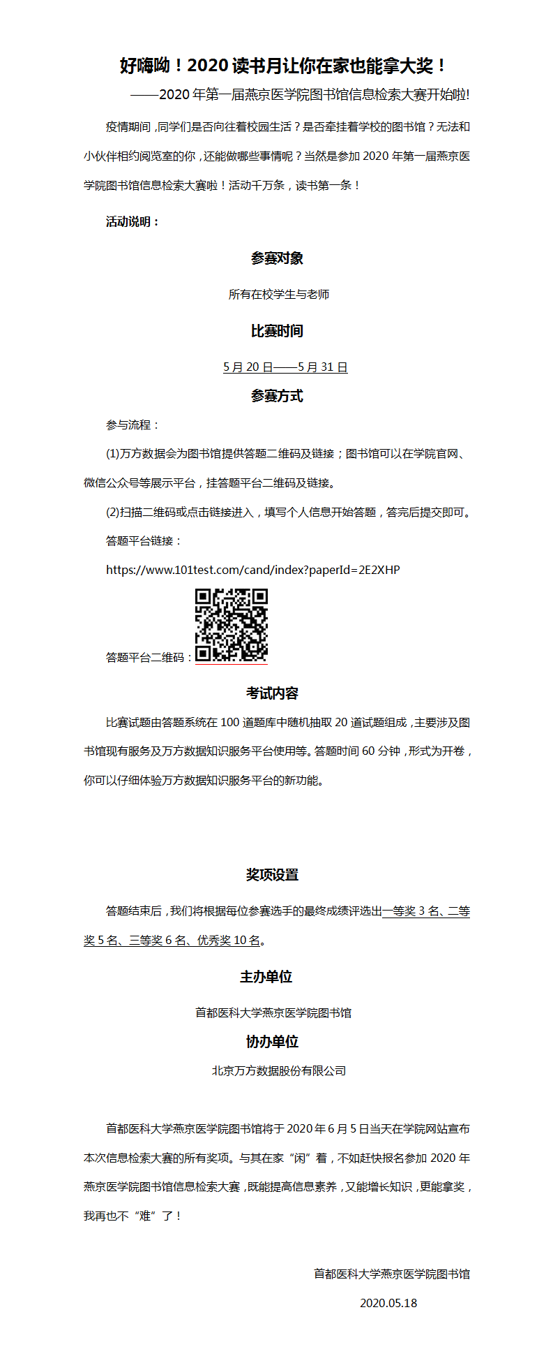 关于2020年第一届哔咔漫画下载 图书馆信息检索大赛的通知