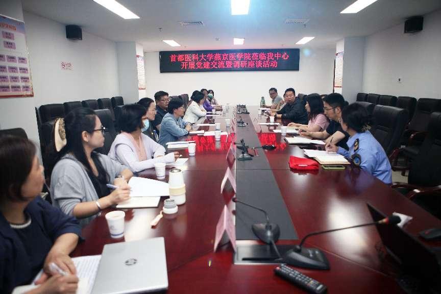 参观结束后,支部一行赴昌平区疾控中心(监督所)开展调研交流,双方以座谈的形式,围绕疾控中心人才需求状况、特点及学院人才培养、毕业生就业等问题展开了深入讨论和交流。检验学学系主任高春艳详细介绍了学系卫生检验与检疫专业的人才培养特色和优势,学系党支部书记孙宁围绕从支部党组织建设、党建与业务融合、贯彻中央八项规定及其细则精神等方面介绍了学系党建工作。昌平区疾控中心(监督所)副主任芦丹介绍了中心目前检验专业人才的基本情况和实际需求;疾控中心(监督所)党委书记、主任(所长)段玉林提出,学生在学习专业知识的同时,必须注重实践能力的培养,同时也要加强思想建设和责任意识的锤炼。最后,汤海新在总结发言中强调,医教协同是培养高素质医疗卫生人才的重要途径,学校与疾控中心(监督所)加强合作,建立人才联合培养机制,对于提升学生的实践能力和职业素养、促进公共卫生事业发展具有重要作用。他希望双方以党建为引领,进一步加强交流合作,为学生创造更多的实践机会和就业岗位,实现校地双方的互利共赢。