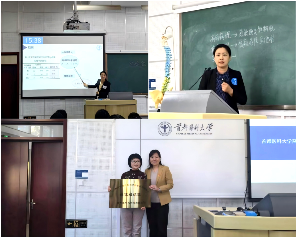 经过激烈角逐,评委们从教学内容、教学设计、语言教态、教学特色、教学反思等多个维度进行综合评定。最终评选出各个奖项。基础组李林英老师表现突出,荣获一等奖、最受学生欢迎奖、最佳教案奖和最佳现场演示奖四项大奖;范伊夫老师荣获二等奖;刘佳、王磊两位老师荣获三等奖。临床组中,潞河临床医学院黄鑫老师获得一等奖;良乡教学医院晁宁老师、怀柔教学医院刘博华老师获得二等奖;平谷教学医院王珊珊老师获得最佳教案奖;潞河临床医学院黄鑫老师获得最佳现场演示奖及最受学生欢迎奖;潞河临床医学院还荣获最佳组织奖。学院领导为获奖教师颁发了荣誉证书并表示热烈祝贺。