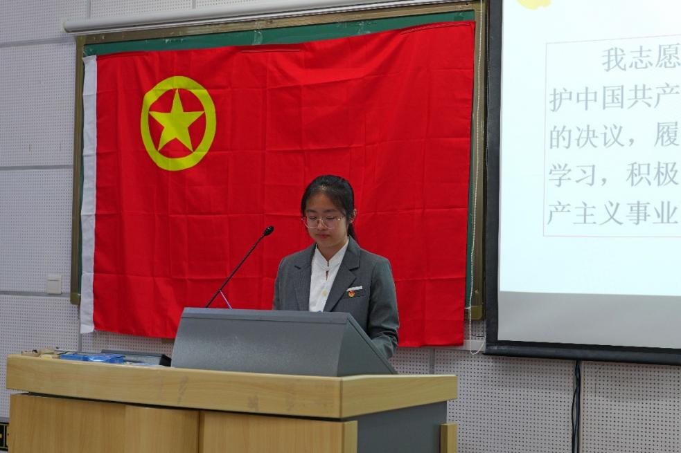 经团组织培养考察,学院上半年共发展110名先进青年正式加入中国共产主义青年团。入团仪式在庄严肃穆的国歌中拉开序幕。主持人说明了入团仪式的意义并宣读新团员名单后,赵艳芝、蓝翠柳、信伟华老师为新团员逐一颁发团员证、佩戴团徽。随后,团委书记带领全体新团员在鲜艳的团旗下庄严宣誓,铿锵有力的誓词展现了广大团员青年不忘初心跟党走、牢记使命勇担当的青春风采。